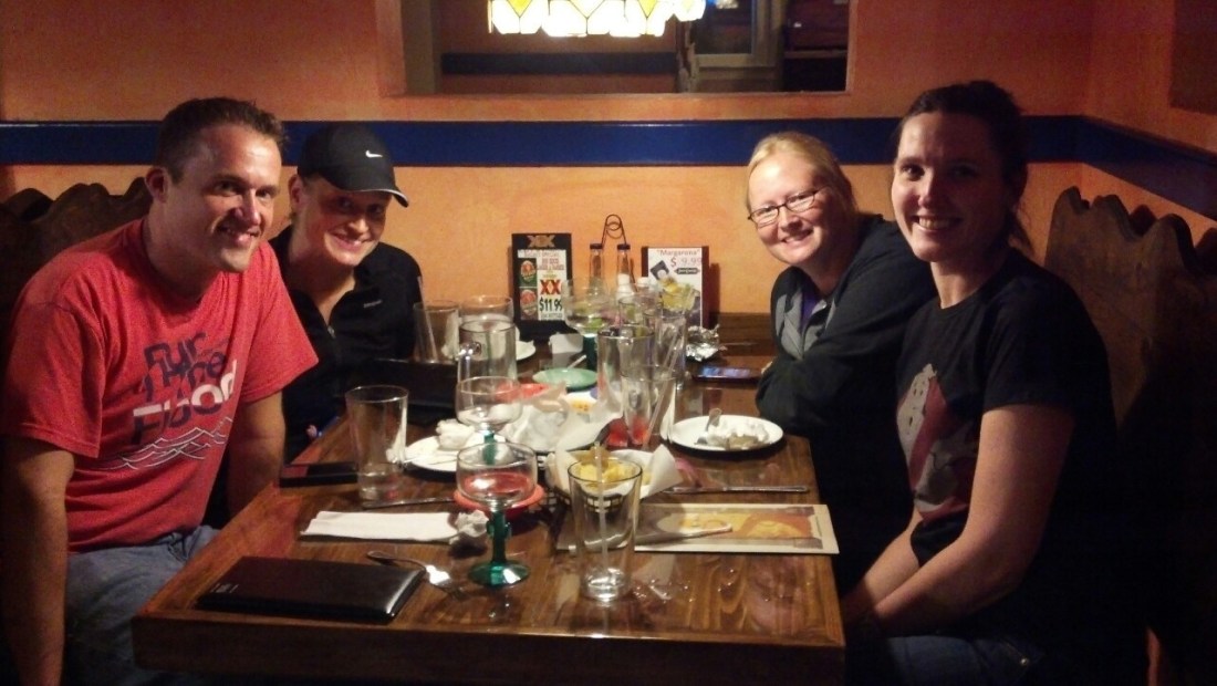 Tumblr meet-up, Nebraska-style! Josh is in town for the double half Marathon with Lindsay this weekend so we all met up! Left to right, Joshbuildshealth, Sarah (workingmysassoff) Lindsay and I!