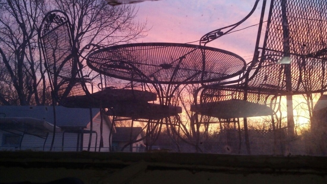 The view out my window this morning. I live in the basement so my view is a little skewed. But isn’t that a gorgeous sunrise? It’s supposed to be 64° here today, but we are expecting snow on Sunday.