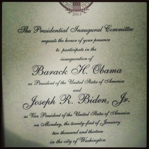 What? This isn’t normal mail at your house? An invitation to the 2013 Presidential Inauguration. #perksoflivingwithastatesenator #presidentialinauguration2013