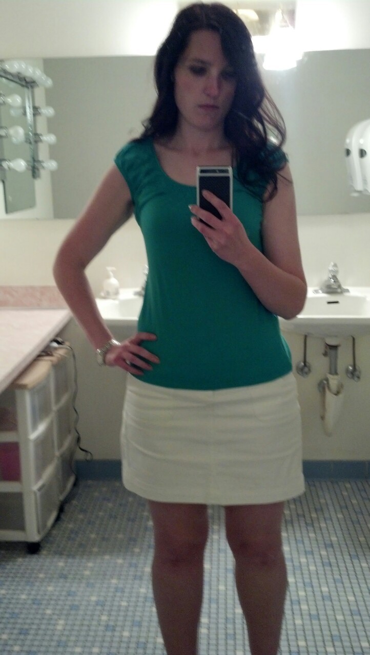 And to think I couldn’t decide what to wear this morning! White jean skirt and green tee FTW! 🙂