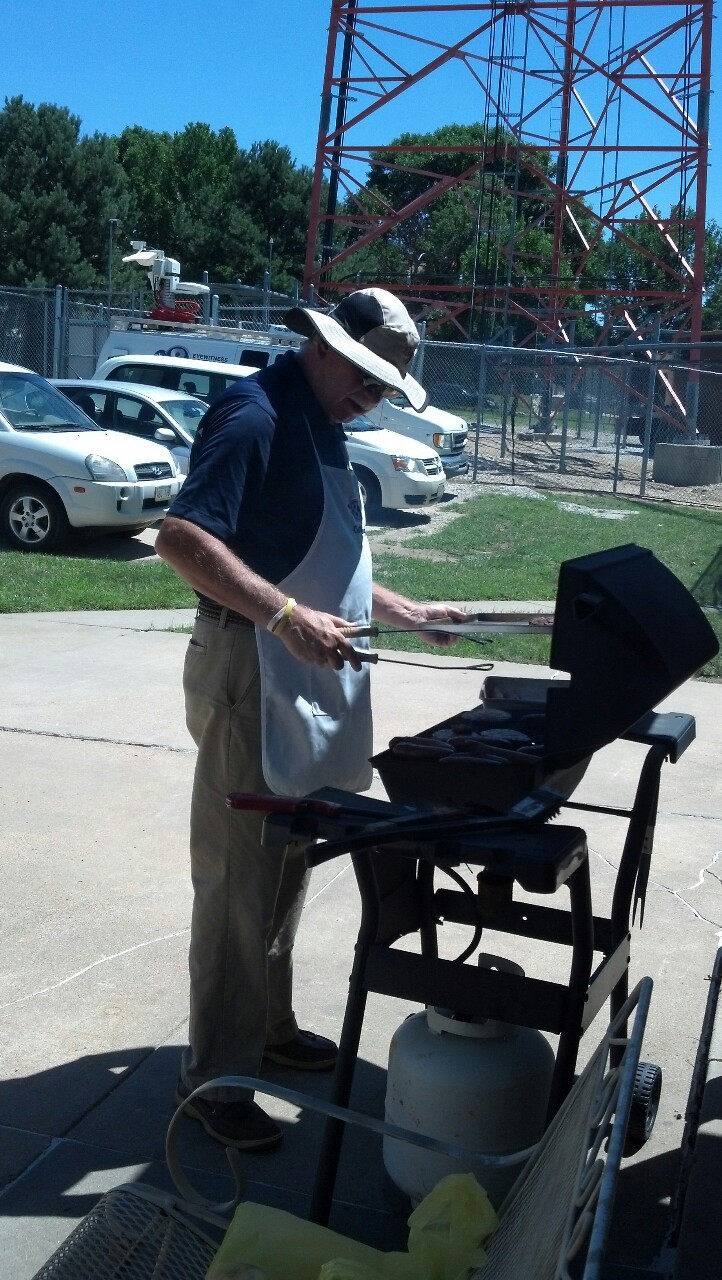 Its BBQ day at work! Our GM is manning the grill. I just love his hat…he’s adorable! His apron says “chef Roger". Its a perfect day…sunny, warm, not humid at all! Love it! I’m all about the free lunch!