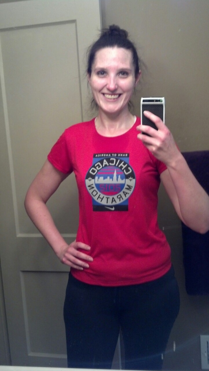 So much awesome today…Twin Cities marathoners…Bob, Brooke and Susie rocked it! And Portland too! Bonnie and Doozer were great! In honor of them and the fact that it’s been a year since the Chicago Marathon, I put on my Marathon shirt and got on the treadmill for a 5k. I didn’t want to do it, but I’m glad I did.