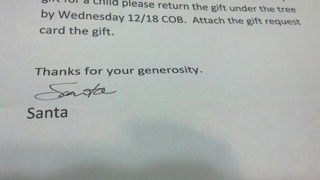 Our station has a tree with gift tags for the Salvation Army and they asked us to pick a tag and give a gift. Pretty cool if you ask me!