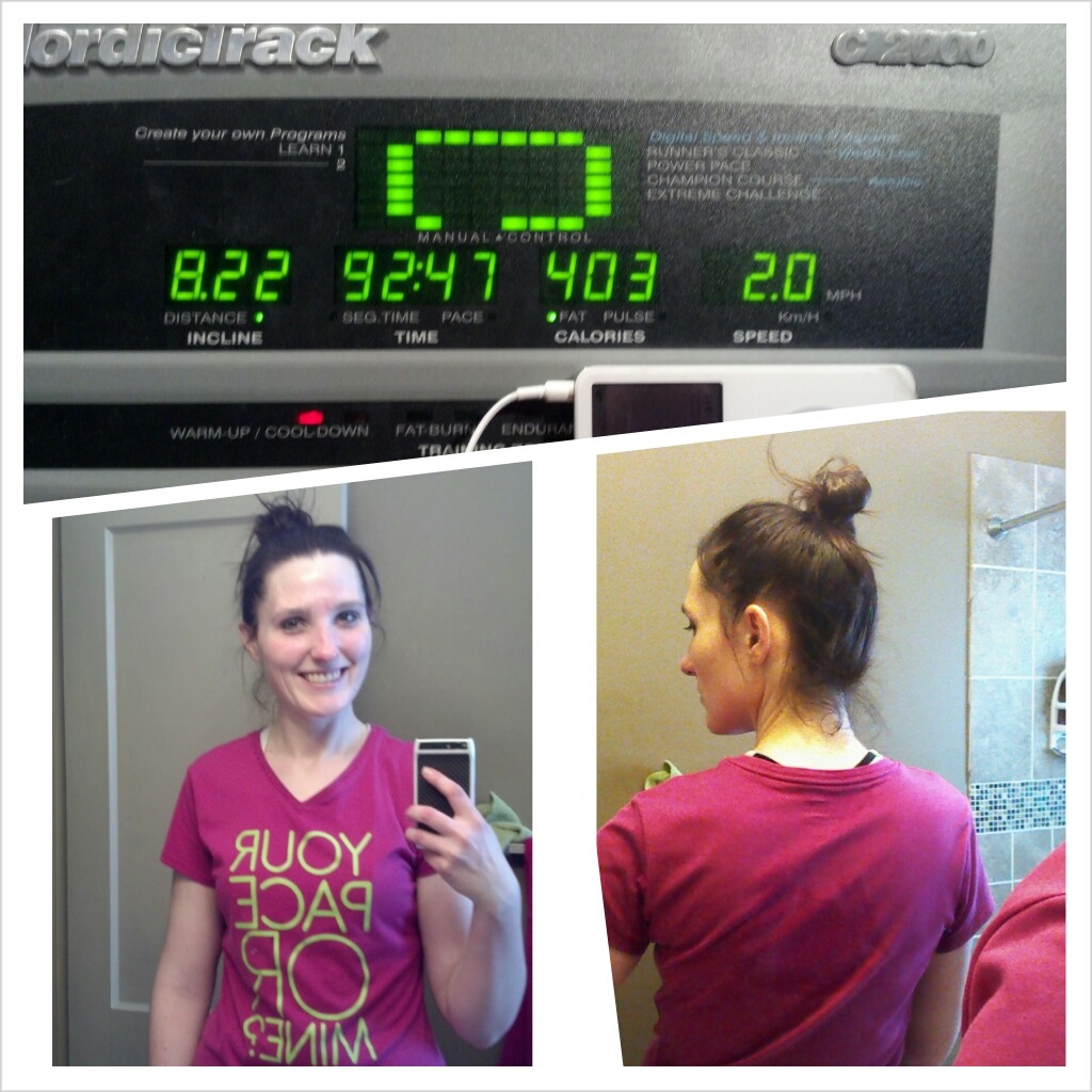 The above pictures are of the treadmill, then me, post run. There is a lot of back sweat happening there. Lovely.