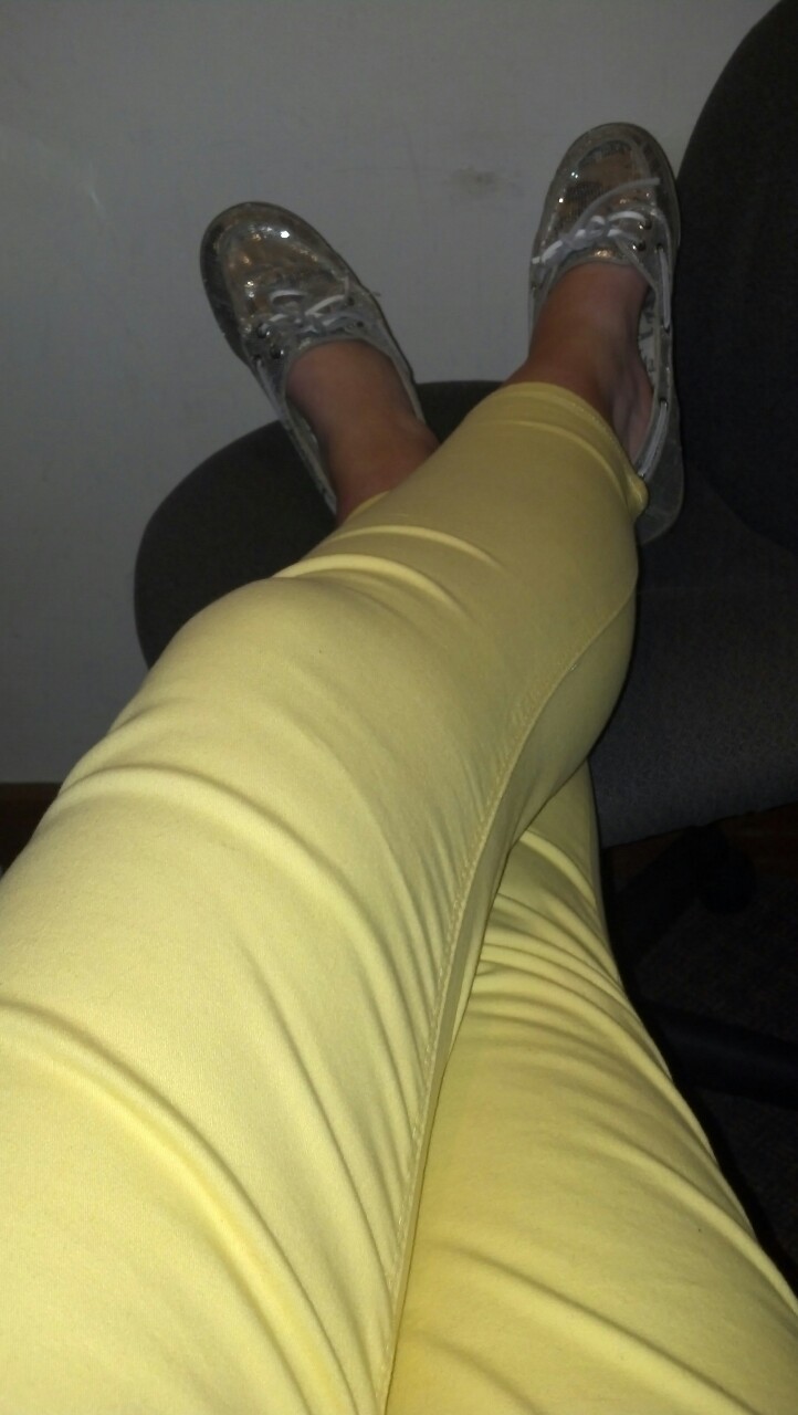 When I bought my white pants it was a bogo situation so I bought these lovely yellow ones. I’m a fan. Such a bright, cheerful color. And my sparkle boat shoes are the best part!