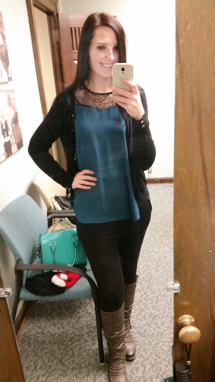 Can we please talk about how happy wearing leggings to work makes me? Comfy pants, a flowy top and boots. New standard uniform.