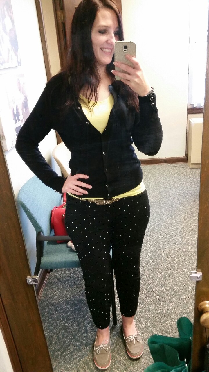 They have polka dots and are ankle pants! And it’s 43 degrees outside currently, and I’m showing my bare ankles. In January. In Nebraska. That’s a win.
