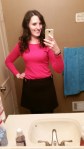 1. This is from today. I dig my hot pink shirt and black mini skirt. Evidently, so did some dude driving by my house today while I was getting the mail–he felt the need to honk at me!