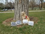 I wrote a piece about the therapy dog Envy going on strike until she gets more belly rubs and better treats. People LOVE that dog. So much. So I’m pretty sure that they will laugh about that one. Her handlers came through with those awesome signs and that photo. Her expression in that picture KILLS me!