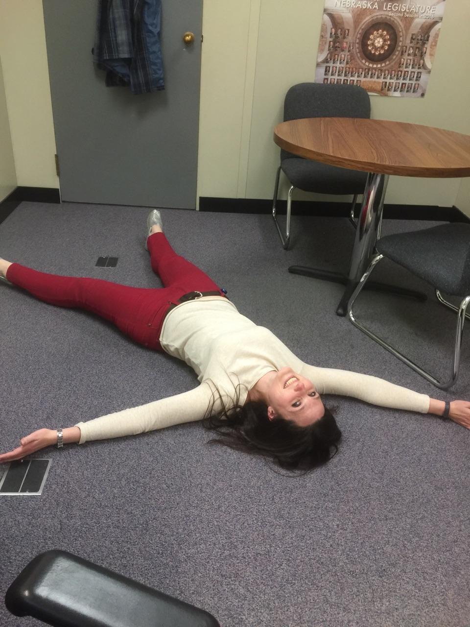 marathonmelissa Uncategorized April 7, 2016December 10, 2018 1 Minute NBD, just laying on the floor at work, doing carpet angels. Nothing to see here… Share this: Share on X (Opens in new window) X Share on Facebook (Opens in new window) Facebook Like Loading... Related Published by marathonmelissa View all posts by marathonmelissa Published April 7, 2016December 10, 2018