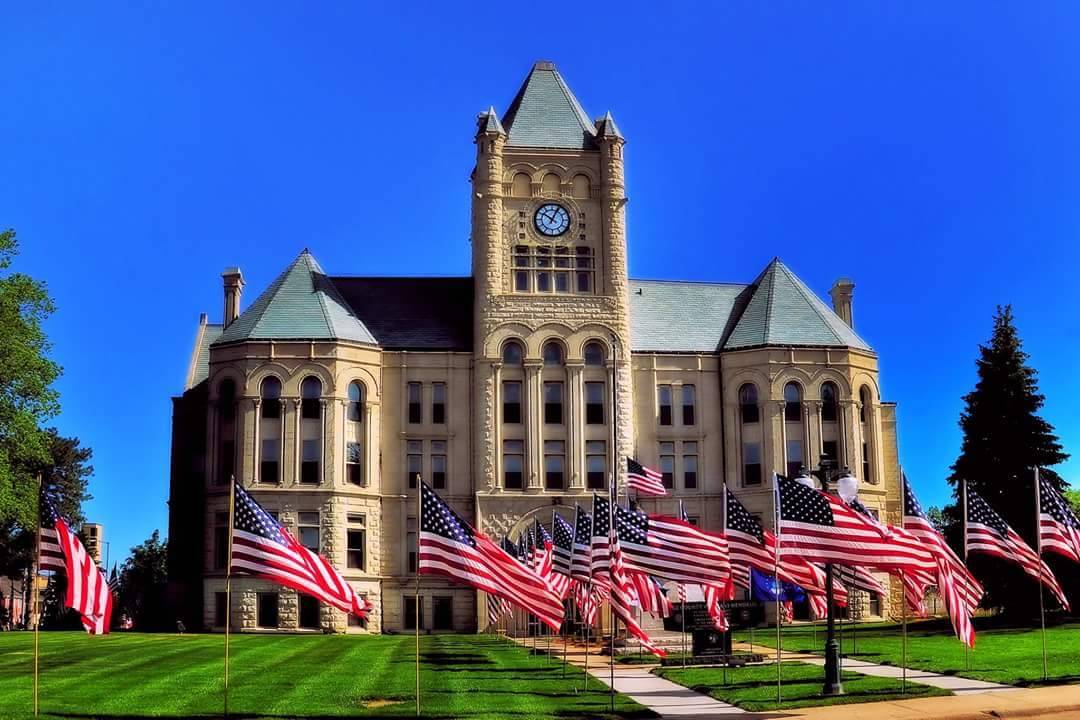 Memorial Day 2016. The courthouse in my hometown in Nebraska. They put those flags up for memorial day, the 4th of July and veteran’s day.