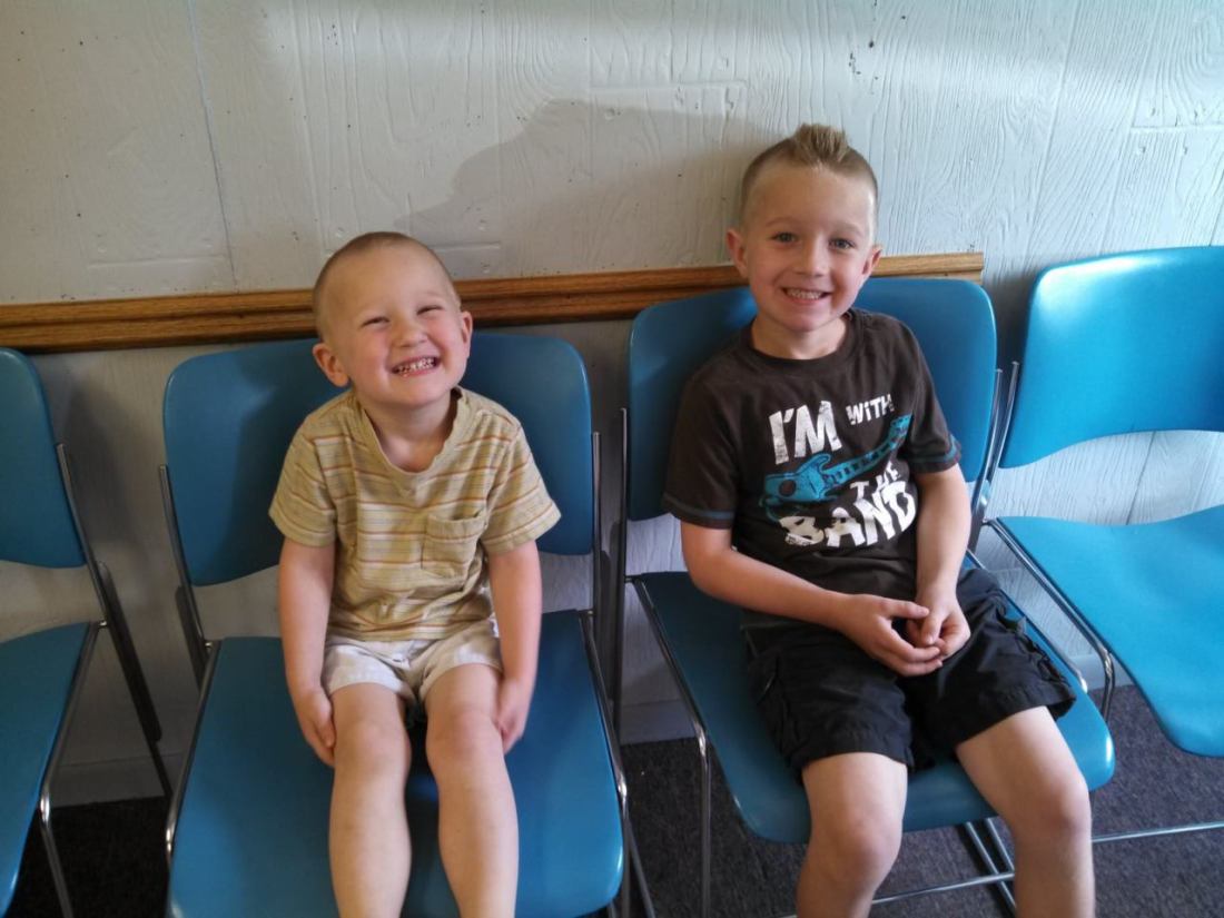 Two of my adorable nephews got their haircut tonight. Nick (the 3 year old on the left) got what he calls his summer ‘fuzzcut’ (instead of buzzcut). Jon the 6 year old, who is now a first grader!! begged all school-year long to get a mohawk. My brother’s compromise was a faux-hawk that he could still style into something appropriate if needed.