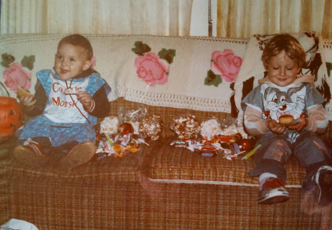 Halloween 198-something. Where I was Cookie Monster and my big brother was Bugs Bunny. Gotta love those plastic costumes! #youcantbreatheinplasticmasks #halloween #flashbackfriday