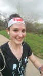 I took a mid-run selfie a la runningforbiscuits. I don’t look as cute as she does, but I tried! It rained intermittently on me during this run…You can see the ominous skies in the selfie. But no thunder or lightning, so I kept going. Success!