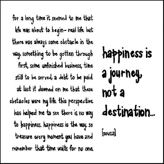 I have this quote as a magnet on my fridge door. It’s one of my favorites! I try to remember these words when life gets me down. Happiness is a journey! Not a destination!
