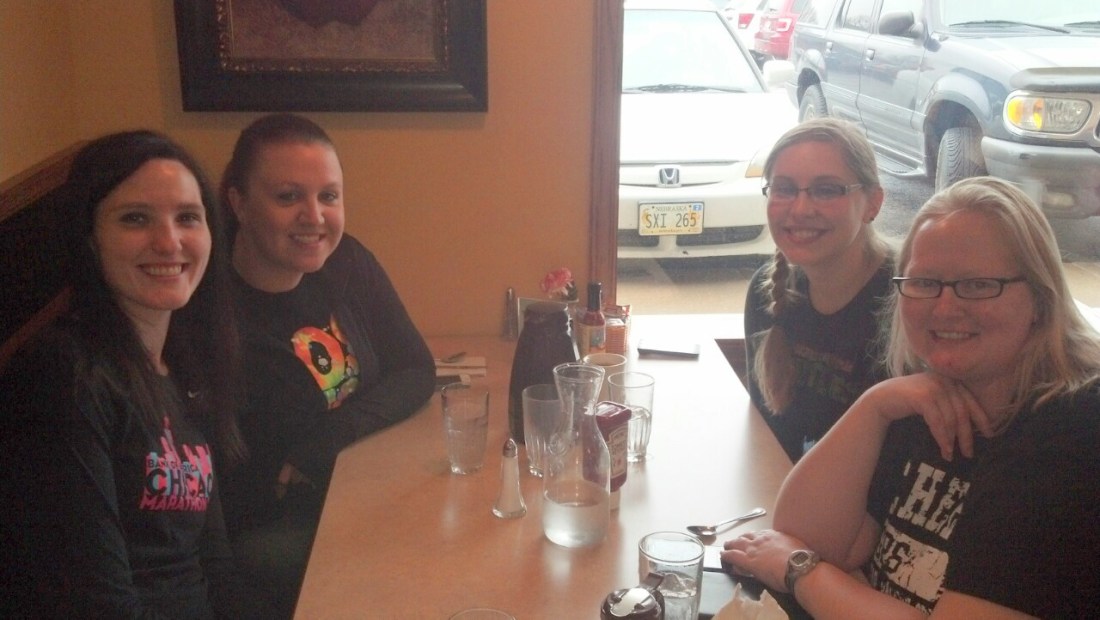 The Lincoln Marathon doesn’t have corrals, you just line up by your mile times or with pacer groups. I wanted to try and stay with the 2:30 pacer group and Lindsay and Holli decided that was too fast for them so they went a little further back. I also found my friend Rachael and suddenly, (30 minutes later!) we were off!