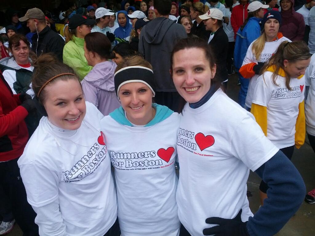 Runners for Boston. From left to right, my friends and coworkers Kelsey and Kayla. Kayla is also my new roomie!