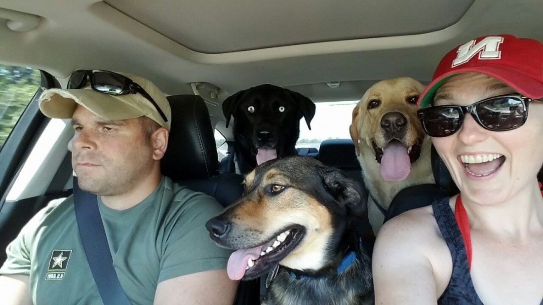 Rio’s face cracks me up! Since she has blue eyes on her black body they are very expressive and stand out. She’s a happy girl. Charlie, the yellow lab, is just a goofball that loves to swim. And Reggie? He’s just happy be included with his friends! (He’s my roomies dog).