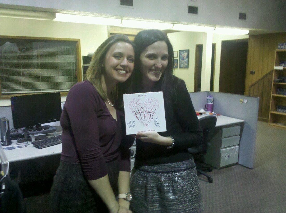 My secret admirer is revealed! My friend and coworker Kelly gave me the chocolates! Her soldier boyfriend is overseas and she knew I wasn’t dating any special guy and was a little sad about it, so she left me candy! How sweet is she?! Love her!